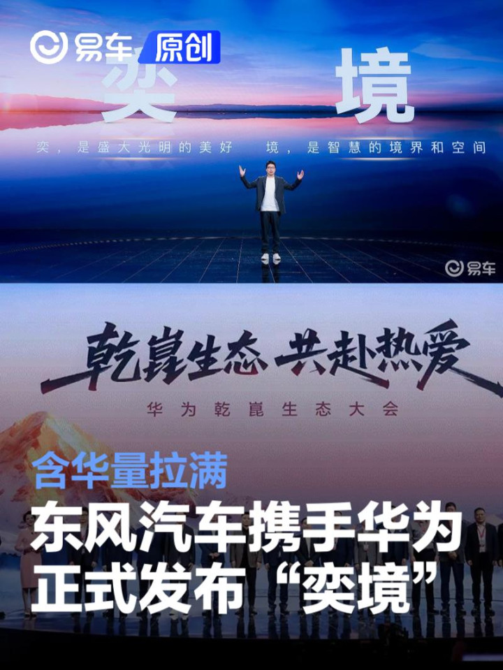 易车讯在11月20日举办的华为乾崑生态大会上,东风汽车与华为乾崑联合打造的新能源汽车品牌“奕境”正式发布。这是首个汽车央企与华为深度合作孕育的全新汽车品牌,双方首度开创行业全新的合作模式,强强联合集中双方优势资源,瞄准高品质家庭用车市场,打造全新“奕境”品牌。